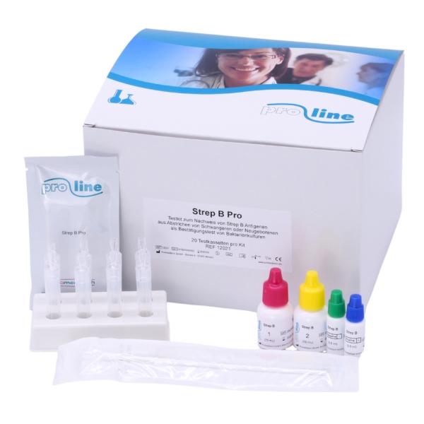 Die Proline Strep B Pro Kassette ist ein immunologischer Ein-Schritt-Membrantest für die schnelle und qualitative Bestimmung von Gruppe B Streptokokken-Antigenen (GBS) aus Abstrichen von Schwangeren oder Neugeborenen.